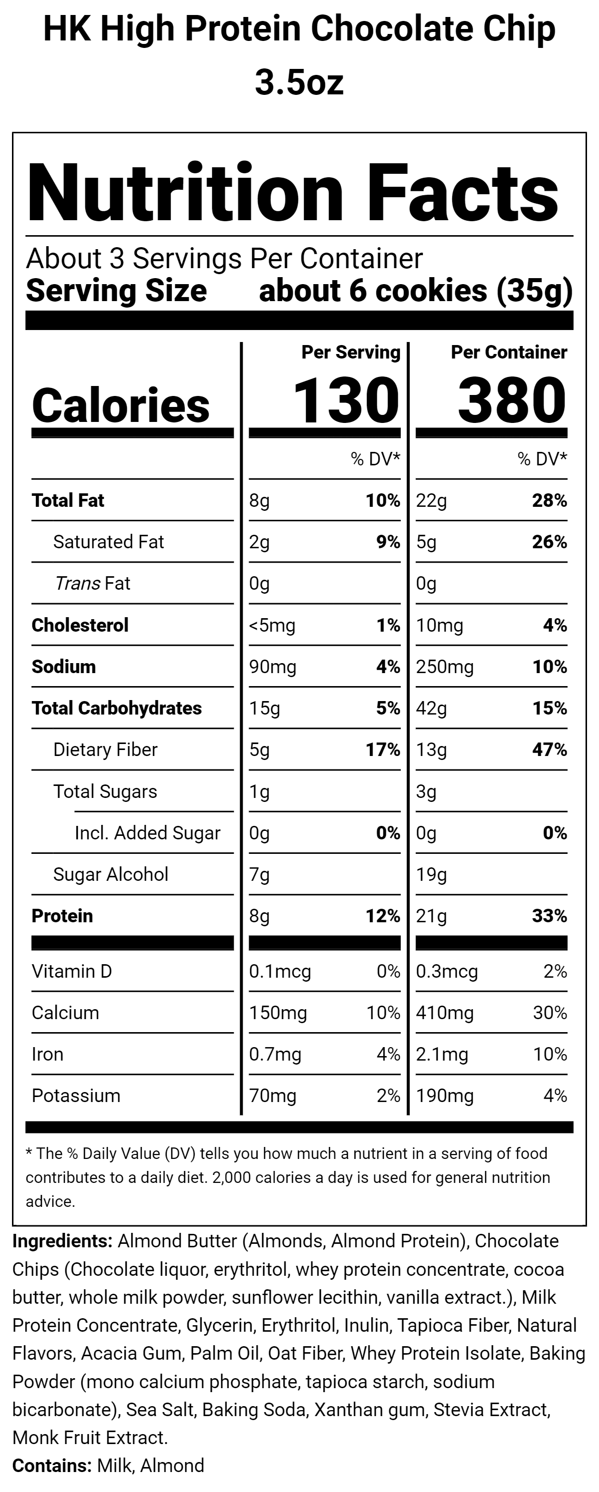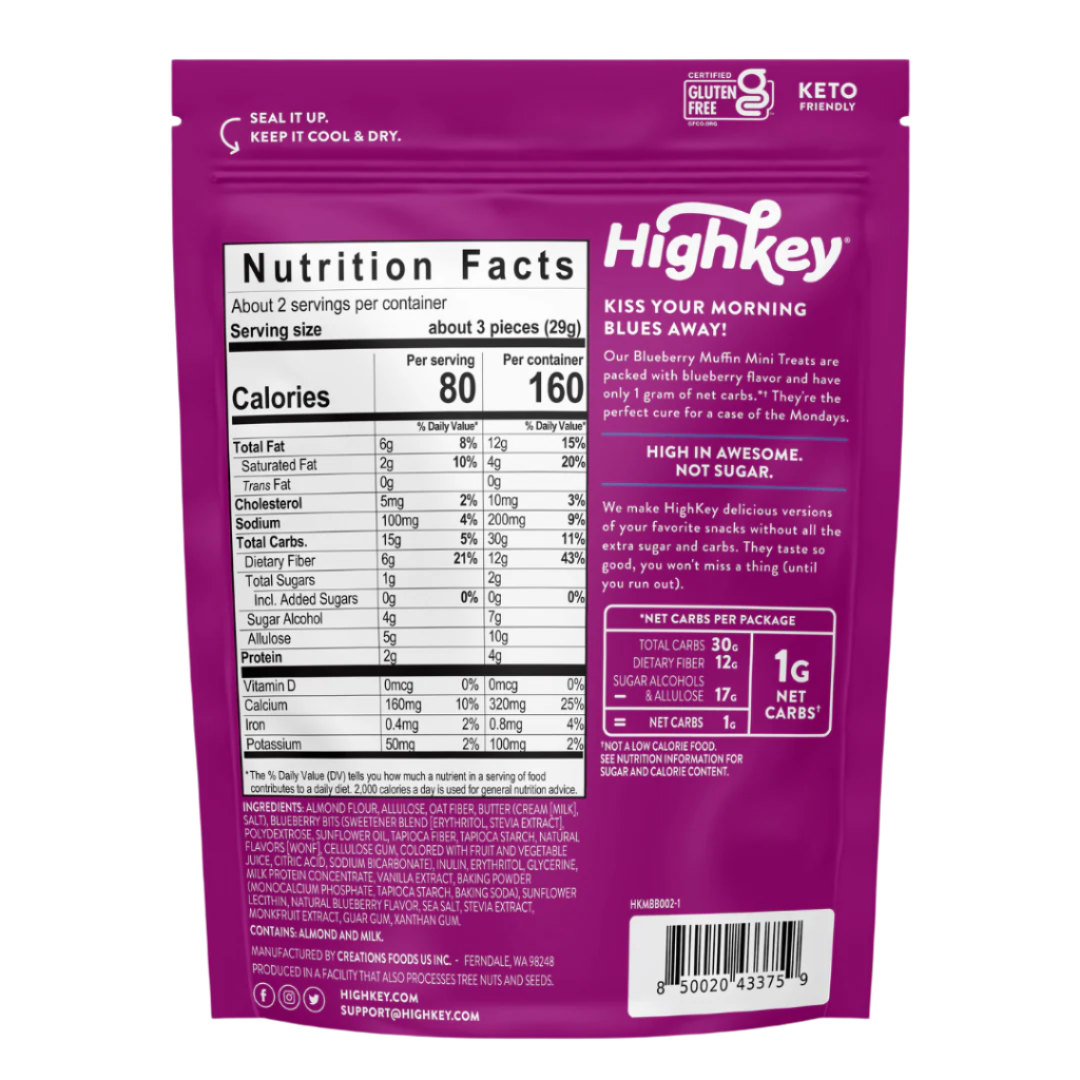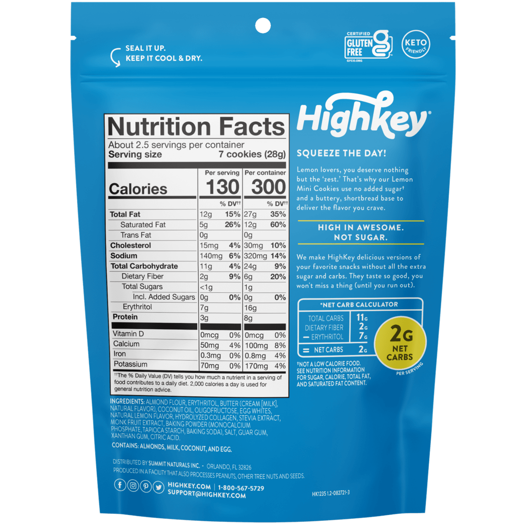 The term "net carbs" simply means carbs that will be absorbed by the body. Since fiber and certain sugar alcohols, like the erythritol we use, are not digestible by the body, we subtract dietary fiber, erythritol, allulose, and glycerin from the total carb count. For example, our Chocolate Chip Mini Cookies have 11 grams of total carbs. However, once you subtract 2g of dietary fiber and 7g of Erythritol, your body only digests 2g of net carbs per serving.
